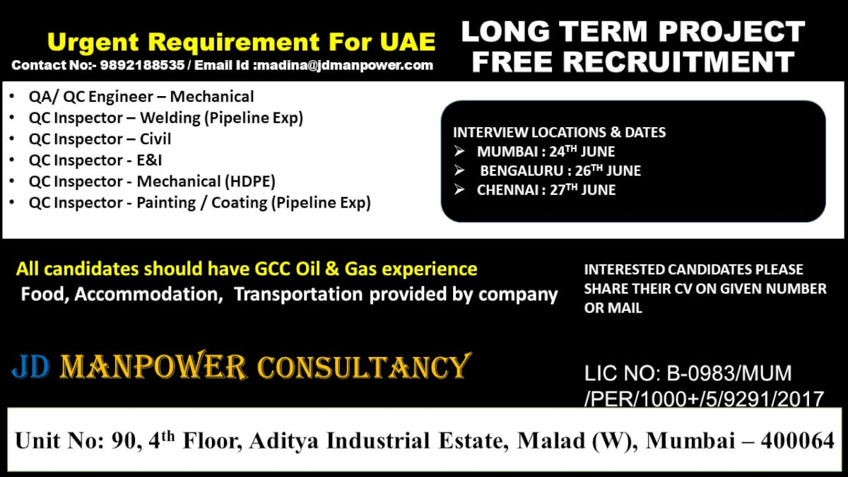 ? Job Opportunity Alert! ? Unlock new career opportunities! JD Manpower Consultancy ? We are currently hiring for a UAE Long-Term Project in Oil & Gas Industry. ? Available Positions: * Fabricator Plate (Structure Fabricator) * Fitter Instrument ? Interview...